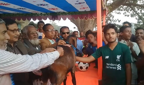 অতিথিগণ বিজয়ী দলকে একটি খাশি তুলে দেন।