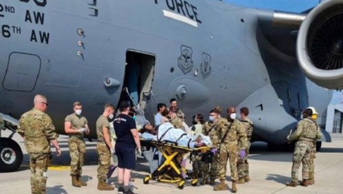 দ্রুত আকাশ-পথ পেরিয়ে আমেরিকার বায়ুসেনার বিমানটি জার্মানির র্যামস্টিন এয়ারবেসে নামার প্রায় সঙ্গে সঙ্গেই সন্তান প্রসব করেন ওই আফগান নারী। প্রসবে সাহায্য করেন মার্কিন বিমানবাহিনীর জওয়ানরাই। মা ও শিশুকে পরে নিয়ে যাওয়া হয় র্যামস্টিন এয়ারবেসের কাছাকাছি একটি হাসপাতালে।
