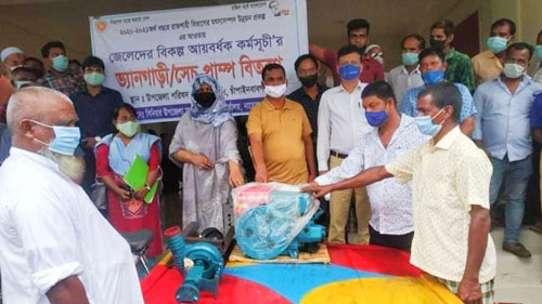 সোমবার বেলা সাড়ে ১১টার দিকে উপজেলা পরিষদ চত্বরে ১৫ জনের মাঝে ৭টি সেচ পাম্প ও ৮টি ভ্যানগাড়ী বিতারণ করা হয়।