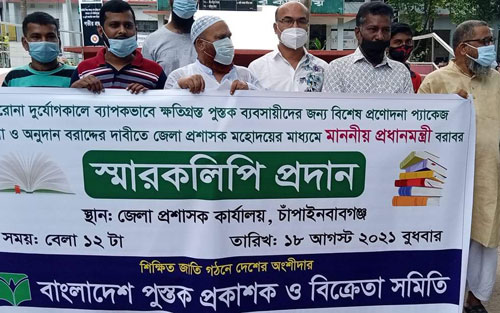 ধূমকেতু প্রতিবেদক, (বিশেষ) চাঁপাইনবাবগঞ্জ : করোনা দূর্যোগকালে ক্ষতিগ্রস্ত পুস্তক ব্যবসায়ীদের সহজ শর্তে ঋণ প্রণোদনাসহ তিন দফা দাবিতে প্রধানমন্ত্রী বরাবর একটি স্মারকলিপি দিয়েছে বাংলাদেশ পুস্তক প্রকাশক ও বিক্রেতা সমিতি, চাঁপাইনবাবগঞ্জ জেলা শাখা।