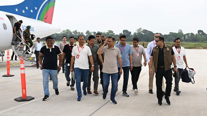 যশোর বিমানবন্দরে প্রধানমন্ত্রীকে স্বাগত জানান বিদ্যুৎ, জ্বালানি ও খনিজ সম্পদ মন্ত্রণালয়ের প্রতিমন্ত্রী অনিন্দ্য ইসলাম অমিত এবং বিএনপির ভাইস চেয়ারম্যান নার্গিস বেগম।