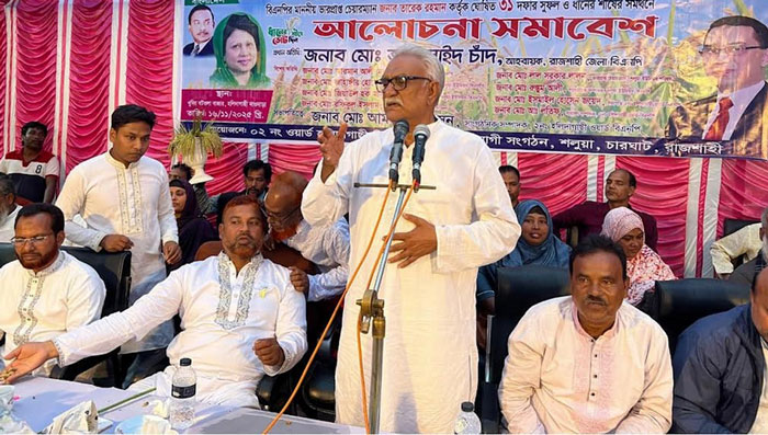 রবিবার বিকালে চারঘাট উপজেলার শলুয়া ইউনিয়নের ২ নং ওয়ার্ড বিএনপি আয়োজিত নাওদাড়া এলাকায় নির্বাচনি সভায় প্রধান অতিথির বক্তব্যে চাঁদ এসব কথা বলেন।