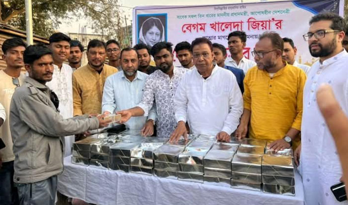 রাজশাহী জেলা ছাত্রদলের সিনিয়র যুগ্ম আহ্বায়ক ও দুর্গাপুর উপজেলা ছাত্রদলের সদস্য সচিব আব্দুস সবুর বুলেটের ব্যক্তিগত উদ্যোগে স্থানীয় দুস্থ, অসহায় ও পথচারীদের মাঝে এই ইফতার সামগ্রী তুলে দেওয়া হয়। এ সময় বিএনপিসহ অঙ্গসংগঠনের নেতৃবৃন্দরা উপস্থিত ছিলেন।