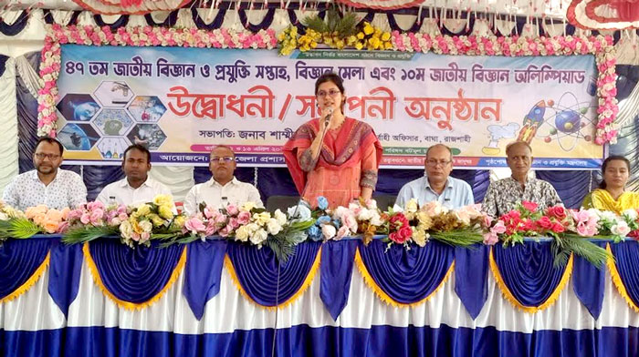 ধূমকেতু প্রতিবেদক, বাঘা : রাজশাহীর বাঘায় ৪৭তম জাতীয় বিজ্ঞান ও প্রযুক্তি সপ্তাহ উপলক্ষে বিজ্ঞান মেলার আয়োজন করা হয়|“উদ্ভাবননির্ভর বাংলাদেশ গঠনে বিজ্ঞান ও প্রযুক্তি” এই প্রতিপাদ্য সামনে রেখে উপজেলা প্রশাসন ও বিজ্ঞান ও প্রযুক্তি কমিটি উপজেলা পরিষদ চত্বরে দু’দিনব্যাপি বিজ্ঞান মেলা ও ১০ম বিজ্ঞান অলিম্পিয়াড এবং বিজ্ঞান বিষয়ক কুইজ প্রতিযোগিতার আয়োজন করে| রোববার(১২-০৪-২০২৬) সকালে সিনিয়র সহকারি কমিশনার সাবিহা সুলতানা ডলি ফিতা কেটে ও বেলুন উড়িয়ে এ মেলার উদ্বোধন করেন| বিজ্ঞান ও প্রযুক্তি মন্ত্রনালয়ের পৃষ্ঠপোষকতায় ও জাতীয় বিজ্ঞান ও প্রযুক্তি যাদুঘরের তত্বাবধানে মেলার আয়োজন করা হয়|