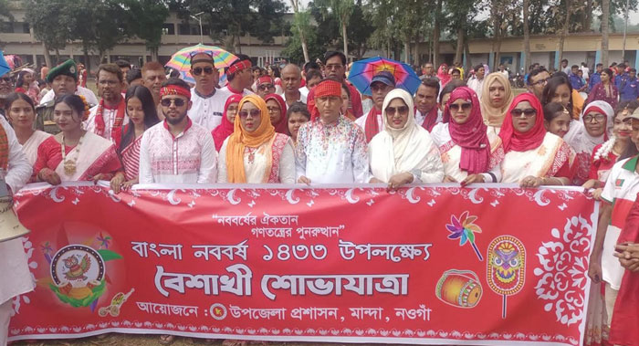 বর্ষবরণ উপলক্ষে মান্দা উপজেলা প্রশাসন গ্রামীণ ঐতিহ্যবাহী লাঠি ও বদন খেলা, শিশু-কিশোরদের অংশগ্রহণে সাংস্কৃতিক অনুষ্ঠানের আয়োজন করে। এদিন বিকেলে উপজেলা শিল্পকলা একাডেমির শিল্পীরা সঙ্গীত পরিবেশন করে। পরে রাফেল ড্রসহ পুরস্কার বিতরণ করা হয়।