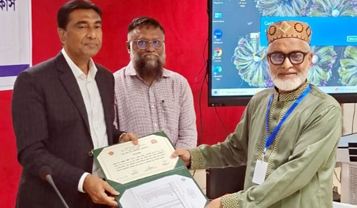 প্রশিক্ষণ শেষে রাজশাহী জেলা পরিষদের প্রশাসক বীর মুক্তিযোদ্ধা অ্যাডভোকেট মো. এরশাদ আলী (ঈশা)-এর হাতে সনদপত্র তুলে দেন অনুষ্ঠানের প্রধান অতিথি।