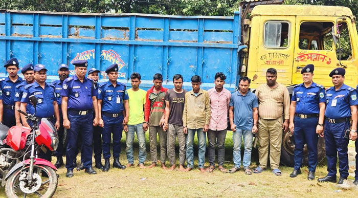 গ্রেপ্তারকৃতরা হলেন, জয়পুরহাট জেলার সদর উপজেলার আবাদপুর গ্রামের খোরশেদ মন্ডলের ছেলে আজাহার আলী (৪৫), আক্কেলপুর উপজেলার মোহাম্মদপুর প্যারাহাটি গ্রামের জামাল মন্ডলের ছেলে জাহাঙ্গীর আলম (৪৪), সাইদুর রহমানের ছেলে সৈকত (৩০), নাসির উদ্দিনের ছেলে আবু হোসেন (৩৫), মৃত খোরশেদ মন্ডলের ছেলে মো: হাসান (৩০), বগুড়ার গাবতলি উপজেলার লাংলু দক্ষিণপাড়া গ্রামের আনারুল হকের ছেলে মো: রনি এবং একই গ্রামের মন্তেজারের ছেলে হামিদুল ইসলাম (৩২)