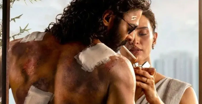 প্রকাশিত পোস্টারে দেখা যায়, প্রভাসের পিঠজুড়ে গভীর ক্ষতচিহ্ন, সেলাই করা ব্যান্ডেজে মোড়া শরীর। লম্বা চুল, ঘন দাড়ি আর গোঁফে এক ভয়ংকর ব্যক্তিত্ব ফুটে উঠেছে তার। এক হাতে মদের গ্লাস, অন্য হাত কোমরে রেখে চোখেমুখে আগ্রাসী দৃঢ়তা।